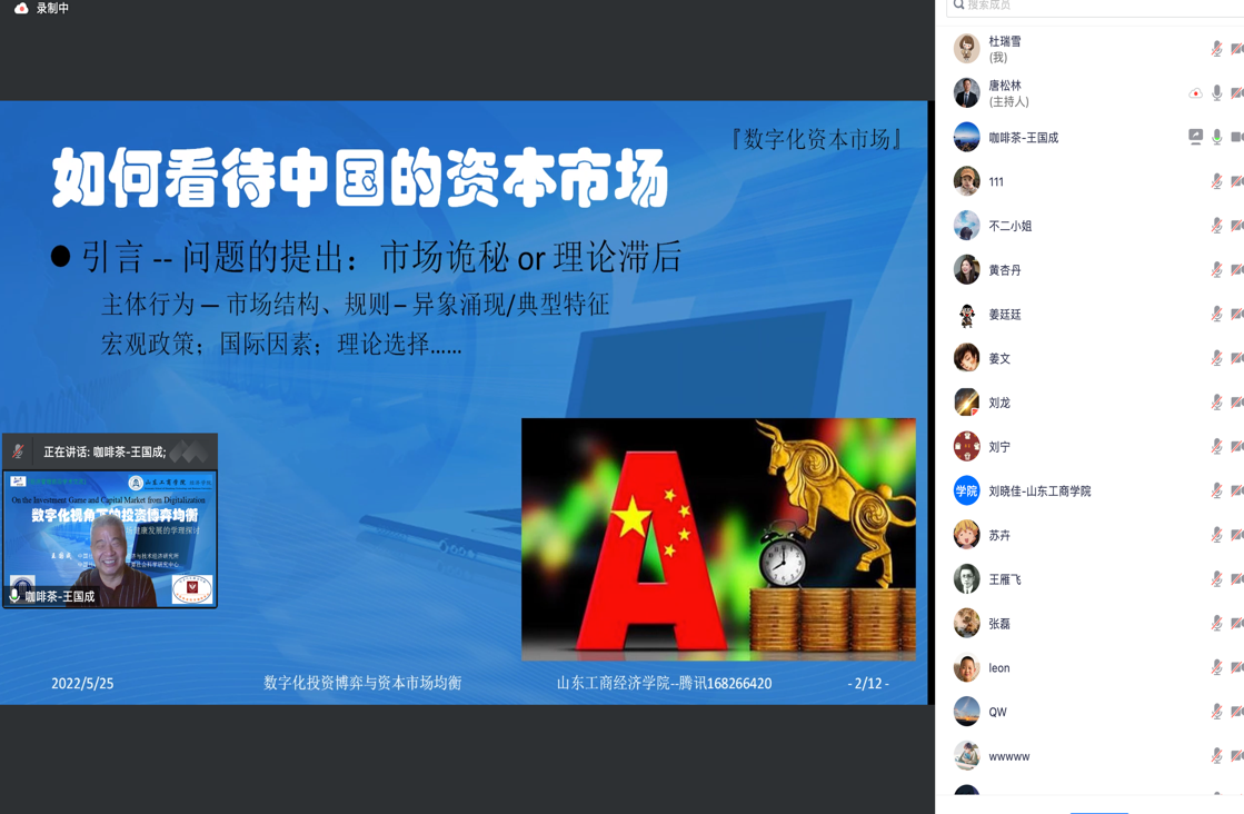 5月25日晚,中国社会科学院大学教授、计算社会科学研究中心主任王国成应亚搏中国官方网站_亚搏yabo(中国)和发展规划处邀请,为学校经管类教师作了题为《数字化视角下的投资博弈均衡——资本市场健康发展的学理探讨》的线上讲座。讲座由亚搏中国官方网站_亚搏yabo(中国)副院长唐松林教授主持。