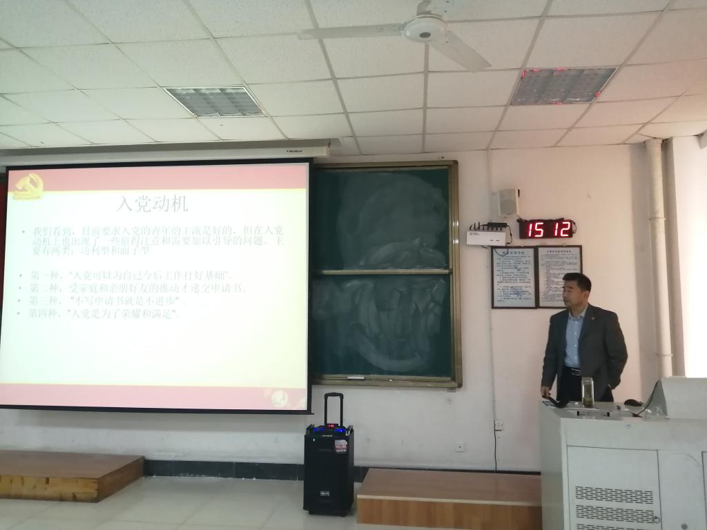 2019年11月5日下午两点三十分,亚搏中国官方网站_亚搏yabo(中国)2019年第二期党员发展对象开班仪式暨第一次党课在5教413室举行。党总支书记马金智主持此次开班仪式,全体党员发展对象参加本次活动。