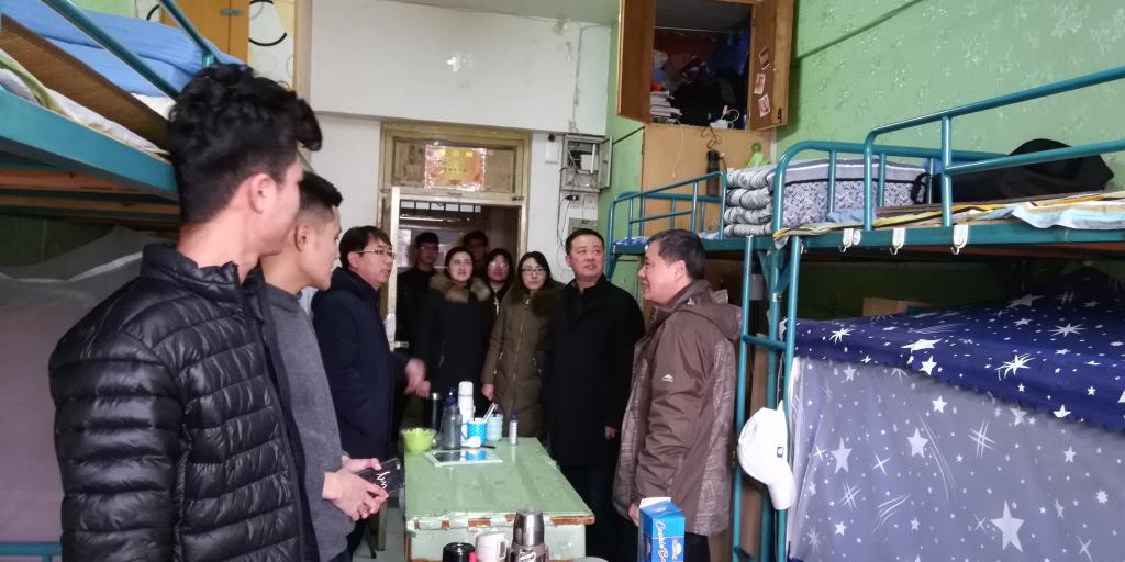 为保障学校校园社区安全稳定工作有序开展,做好假期前安全工作部署,进一步了解学生的思想动态和生活情况,1月9日,学院院长王发明、副院长唐松林、副院长白千文、党总支副书记周蕾和16级辅导员郝晓共同走访了学生宿舍。