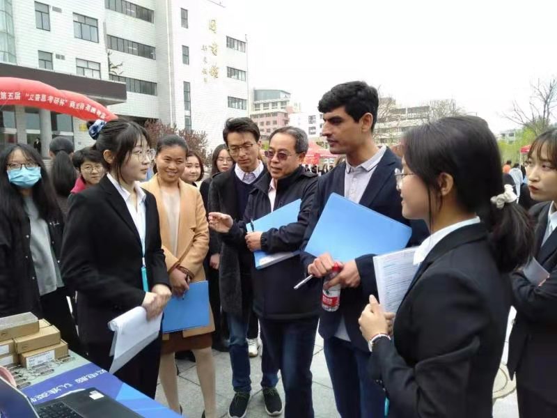 本次挑战赛共分为四个环节,分别是商业计划书、展位海报设计与商品陈列、贸易谈判、新产品发布会。其中,谈判环节于下午两点在纳川广场举行,评委老师为国际经济与贸易教研室吴仁波老师、刘建芳老师、李德震老师、Waqar Ameer老师。评委老师们依次到各展位前与参赛选手进行谈判,选手们用流利的英语为评委们介绍了他们的产品和服务类型,不仅从产品成本、质量、功能、可靠性和价格等多角度来凸显产品的优势,同时介绍了产品的市场销售情况、产品投资情况等内容。在此前提下双方进行了友好深入的谈判,最终达成了双方合作共赢的交易合同。评委们对每支队伍的综合表现进行打分,商业谈判会顺利结束。