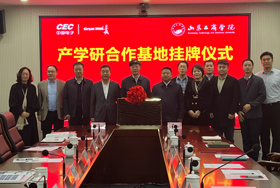 山东长城执行董事黄剑与山东工商学院党委委员、副校长刘冰代表双方为“产学研合作基地”揭牌。