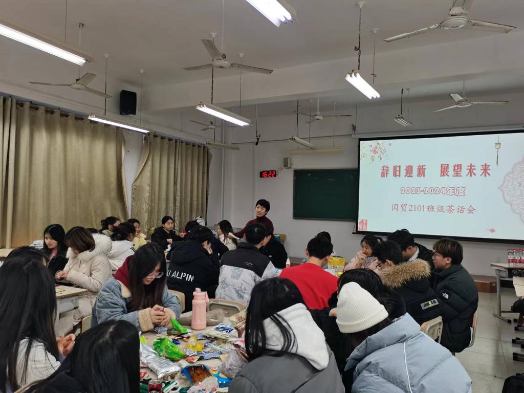 2023年12月19日,国际经济与贸易专业2101班在5206教室举办“辞旧迎新,共话明天”班级茶话会活动。本次活动邀请了山东工商学院亚搏中国官方网站_亚搏yabo(中国)企业外聘导师、原海信集团中国区营销中心人力资源部部长高金桥女士为同学们进行了一场别开生面的就业辅导讲座。高女士首先组织同学们参与海信集团面试环节的团队合作游戏,随后以“找工作那些事儿”为题为同学们讲解如何写简历、如何投简历以及如何解读招聘职位说明书,并与同学们探讨了当前就业形势及就业技能储备。