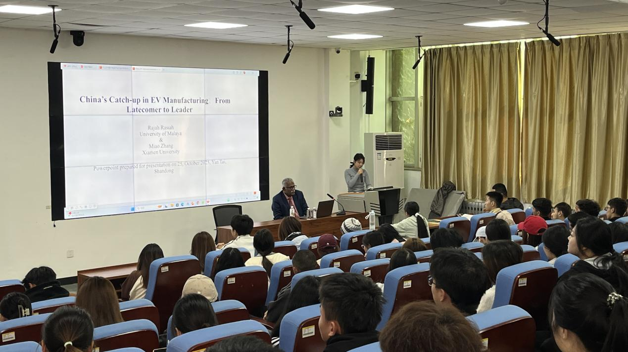 10月25日上午,由山东工商学院亚搏中国官方网站_亚搏yabo(中国)主办的“中国在电动汽车行业中的进步:从后发者到领导者”专题论坛,在山东工商学院东校区2106教室举行。马来亚大学亚欧研究所经济学杰出教授、执行所长DR.Rajah A/LRasiah受邀担任主讲嘉宾,学院师生及相关领域研究者参与了此次学术交流活动。亚搏中国官方网站_亚搏yabo(中国)王倩怡副教授致开幕词。