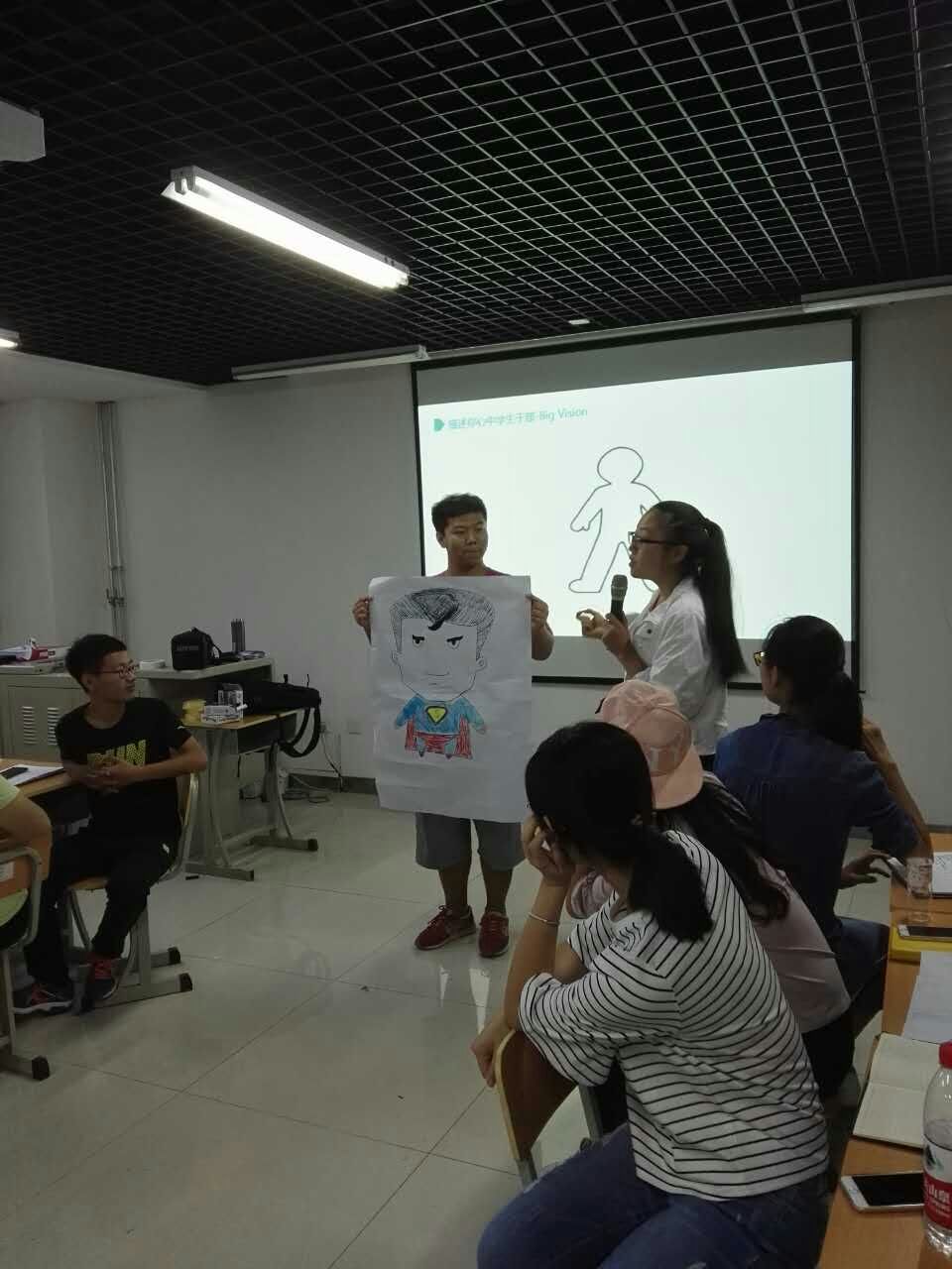 午休过后,下午的课程从需求方面展开,周老师引导同学们运用移情,5why分析等方法来了解新生需求。经过各小组激烈的讨论过后大家得到了一些结果,并继续通过画图的方式表现出来,并且各小组上台展示。在周老师的引导下大家共同从想到了杯子的各种用途,了解了格子外思维,进行了头脑风暴,并想了一百种帮助新生的方法,大家纷纷脑洞大开。