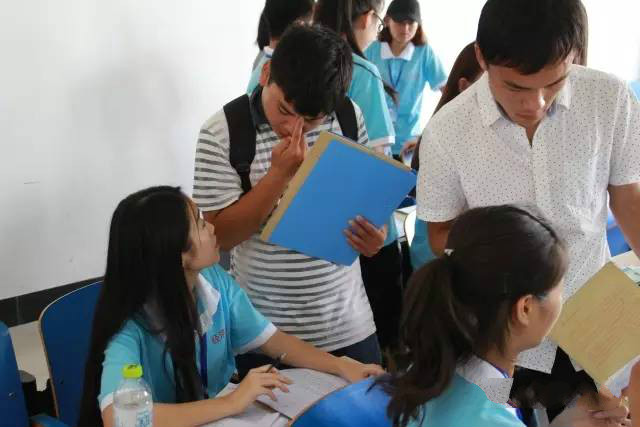早上六点半,学生会各部门就来到迎新地点,按部就班各就各位。随着新生们陆陆续续的到来,工作变得忙碌起来,审查录取资格,确认扣费信息,分宿舍开单子,各项步骤井然有序的进行着,现场秩序井然。
