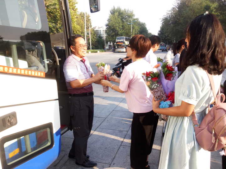 回到学校后,老师们刚一下车,等待已久的各班学生代表向老师送上了鲜花以及节日的祝福并争先恐后的与老师合影留念。在场的每一个人无不被浓浓的师生情所感动。