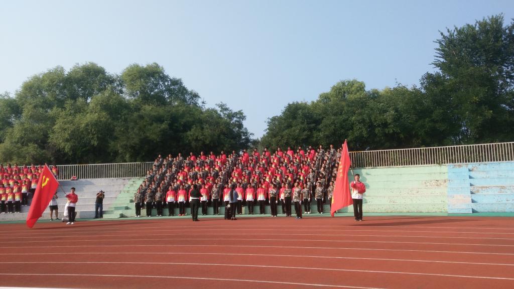中午,我们的新生们就早早的来到操场彩排。顶着火热的太阳,虽然流着汗,可大家还是认真的一遍又一遍排练,把每一遍排练当成正式比赛。