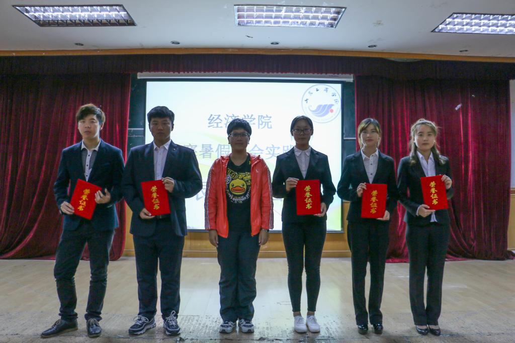接着,主持人宣布社会实践优秀团队和个人名单,并由亚搏中国官方网站_亚搏yabo(中国)团总支书记于向科,学生会主席吴文静,学生会秘书长刘海霞,学生会副主席王盛敉给获奖团队及个人颁奖,并合影留念。
