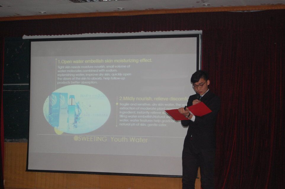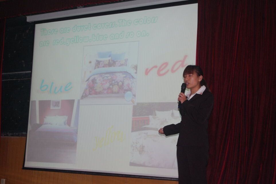 比赛共分为两个流程,用英文介绍PPT展示产品以及针对产品特色进行节目展示。选手们流利的英语表达、自然的肢体动作以及条理清晰的内容框架,给了评委老师眼前一亮的感觉。而节目展示更是体现出了选手们的的创意及表现力,缓和了赛场上紧张的气氛,并给现场带来了阵阵欢声笑语。在历时一个半月的比赛过程中,各队选手自行寻找并联系相关公司,确定产品,以团队为单位撰写商业计划书,在谈判环节,能够熟练的用英文向评委老师介绍自己的产品。关于产品的数量、单价、贸易术语、支付方式等项目能够做到熟练流利的沟通。在展台展示期间,评委与选手在平等交易的基础上,既分毫必争,又友好合作,双方逐渐达成共识,使谈判顺利完成。而选手们在碰壁后精彩的临场发挥也令老师不禁点头。产品发布会更是体现了选手们的创意和舞台展现力,充分的将产品的特点及用途展现了出来。
