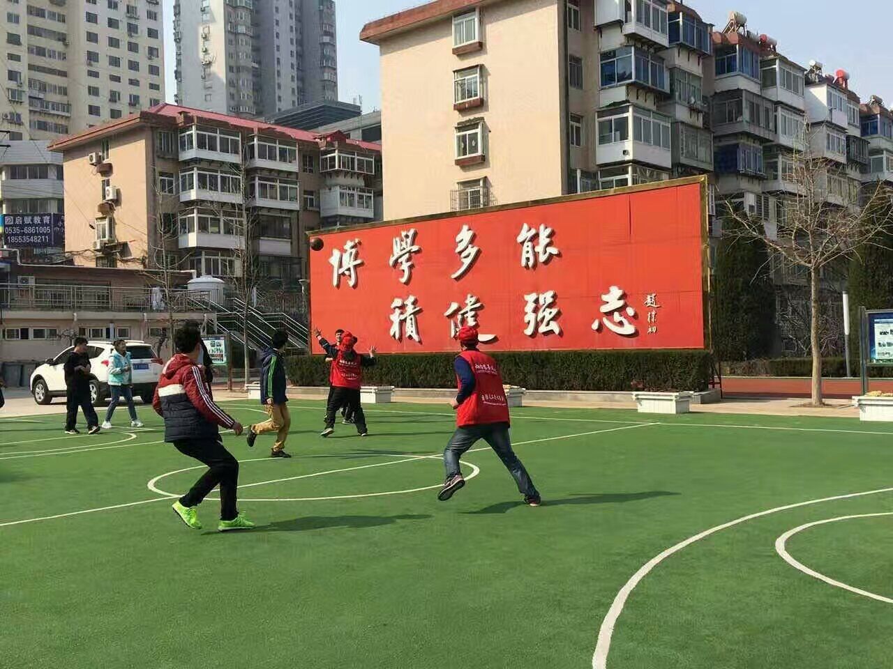 在简单的交流认识后,志愿者们为聋哑学校的同学们送上了准备的礼物,随后和他们开展了打篮球、打羽毛球等丰富的游戏活动,好是热闹。最后,还与聋哑学生进行了一场激烈的篮球比赛,现场呐喊声,欢呼声一片,这时的我们和他们都知道,我们都是朝气蓬勃的一代。