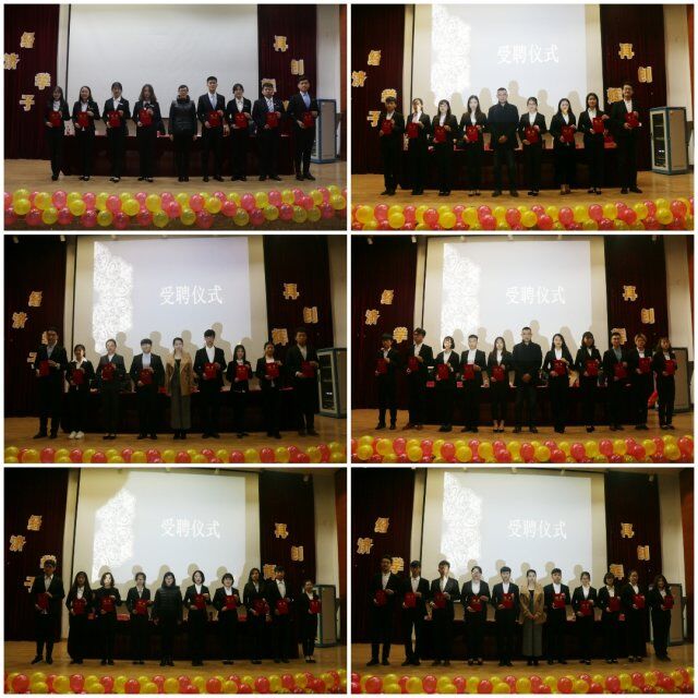 接着,由在场老师宣读常委、部长、助导名单,并分别由亚搏中国官方网站_亚搏yabo(中国)党总支副书记周蕾、团总支书记于向科、17级辅导员赵萌、研究生辅导员任亚芳为他们颁发聘书。