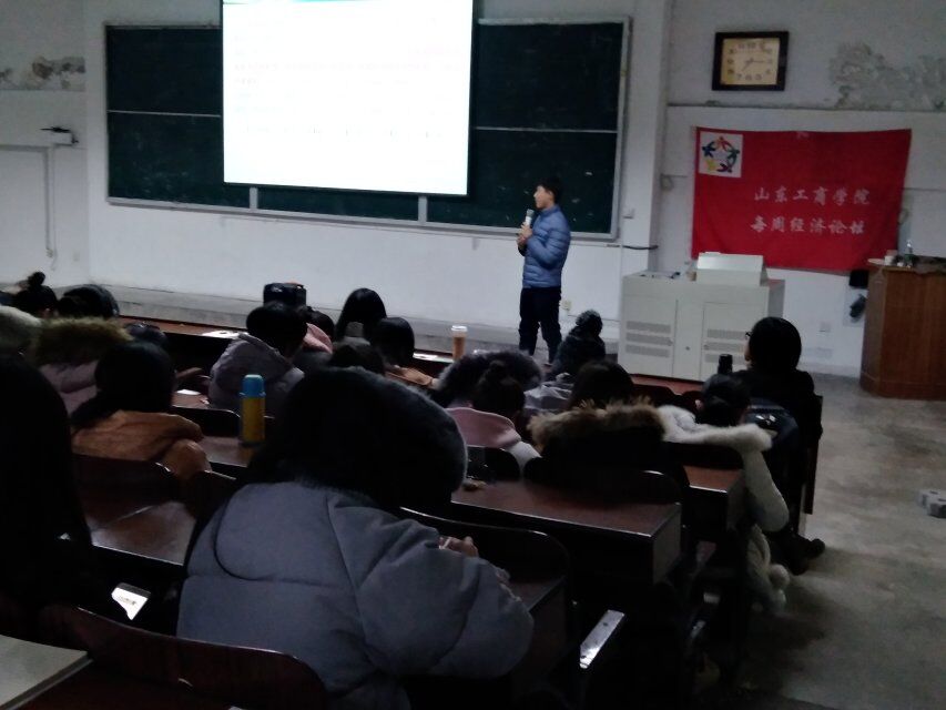 2017年12月17日晚上七点,山东工商学院每周经济论坛之第十期博士论坛在二教208室举行。此次讲座由山东工商学院老师孙海波博士担任主讲,亚搏中国官方网站_亚搏yabo(中国)全体同学和我校其他院系同学参加了本次论坛。