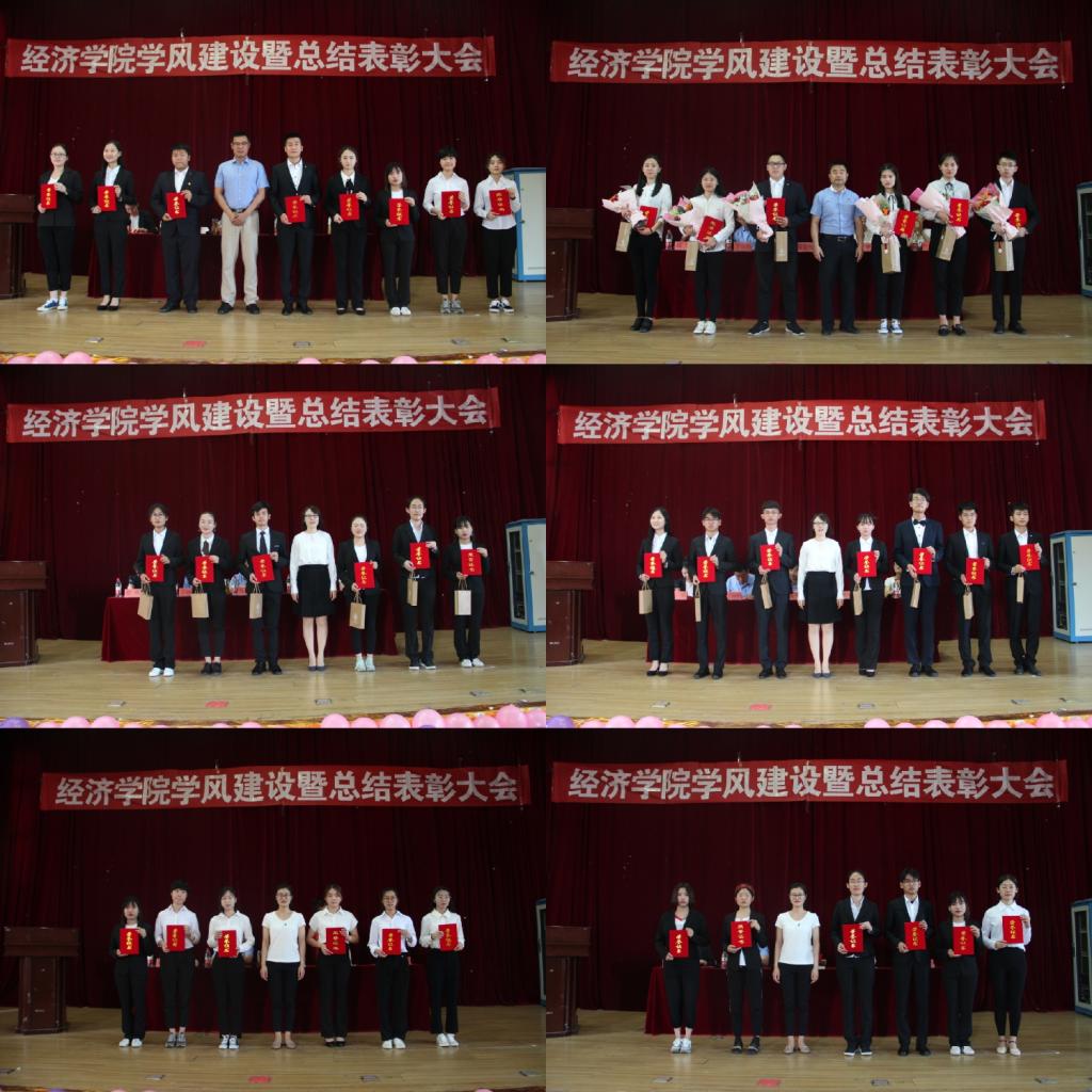 大会集中表彰了在本年度获省级优秀班集体、校级优良学风班集体、校级优秀团支部、优良学风宿舍及四、六级成绩优秀班级等优秀集体和获得校级及以上荣誉的优秀学子、英语之星、数学之星、学科竞赛获奖者、考研标兵等优秀个人。经济学专业的徐冬婷和姜文作为考研标兵代表分享了考研经验,建议师弟师妹们要找好自身定位,确立目标坚持下去,并强调要要多参加社会实践,在实践中锻炼自身综合素质。马书记在总结发言中强调提前规划的重要性,并详细提供了有效的规划方法和考研的必要性,指出考研贵在坚持,提高自学能力、规划能力是最重要的,同时还为大一同学的大学生活规划提出了宝贵意见。