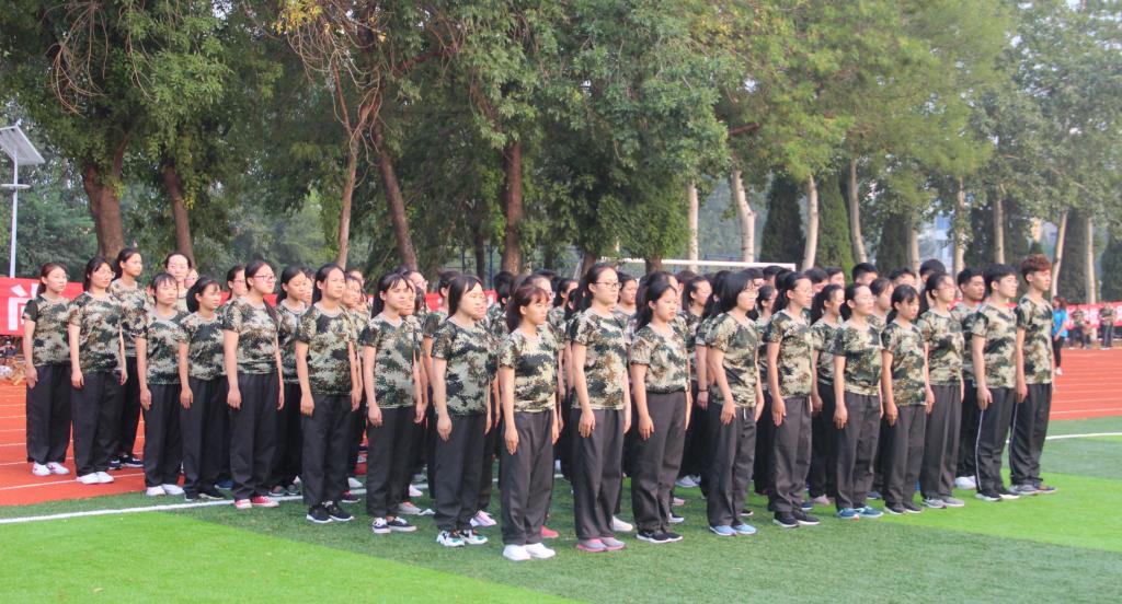 在正式开始训练前,各个教官向新生强调军训精神,提出军训要求。军训的第一个项目是站军姿,刚开始新生的姿势并不标准,但他们紧皱的眉头和两颊的汗水表明了他们认真的态度。随后,在教官的指导下他们的军姿更加标准:两腿挺直,小腹微收,自然挺胸,两肩稍向后张,两手自然下垂......在炎炎烈日下站成了一一棵棵绿色挺拔的青松。