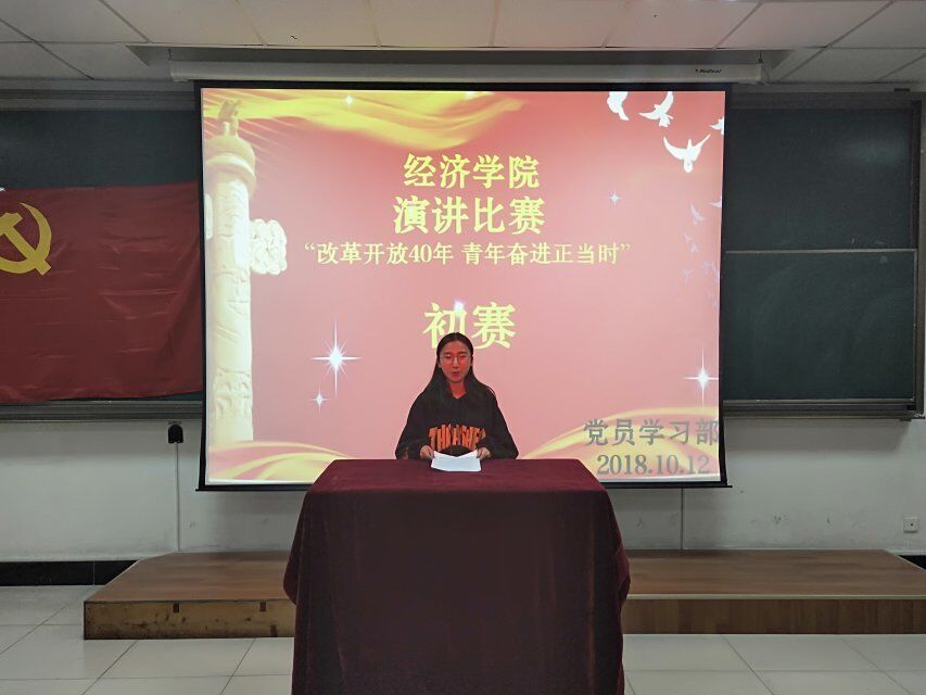 2018年10月12日下午四点,亚搏中国官方网站_亚搏yabo(中国)“改革开放40年,青年奋进正当时”演讲比赛初赛于五教413室举办。本次比赛的评委有亚搏中国官方网站_亚搏yabo(中国)第十六届学生会常委,还有幸请到山东省烟台市青年演说家一等奖获得者王瑜担任特邀嘉宾,参赛选手由17级学生会干部及18级报名同学组成。
