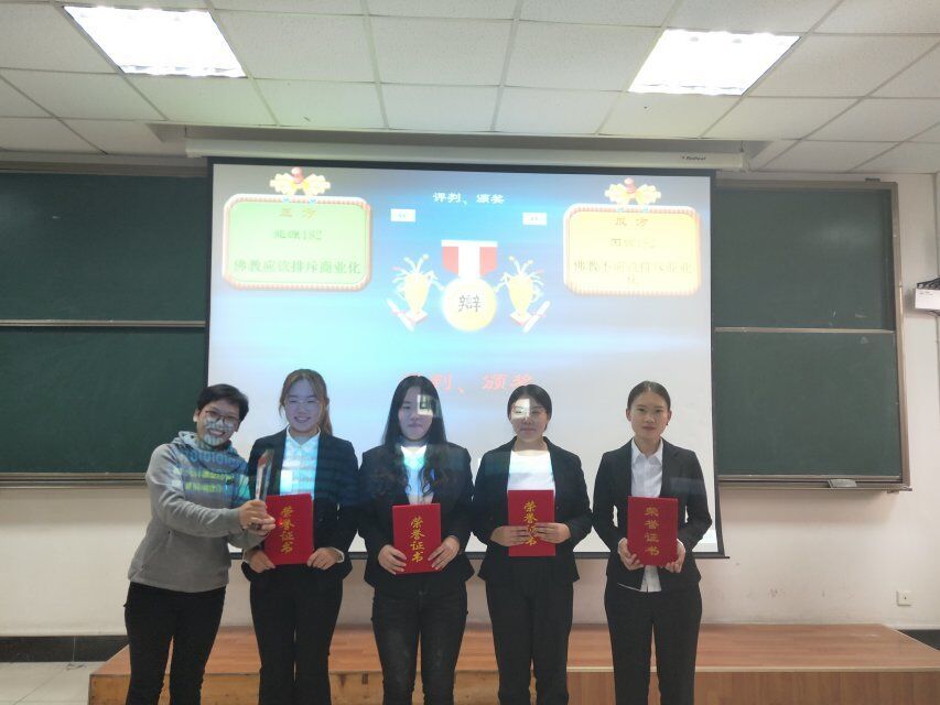 接着便进入新生辩论赛的决赛,双方辩手就“佛教是否进行商业化”进行层层剖析,辩手们犀利的言辞与精炼的语言使现场气氛迅速升温,在自由辩环节中,双方更是紧扣辩题,步步紧逼,场下也掌声叫好不断。最后评委的现场点评也让同学们获益匪浅。经过激烈的比拼,最终国贸182凭借清晰的思维逻辑与出色的辩论能力摘得桂冠,评委为获奖队伍以及最佳辩手颁发奖状。