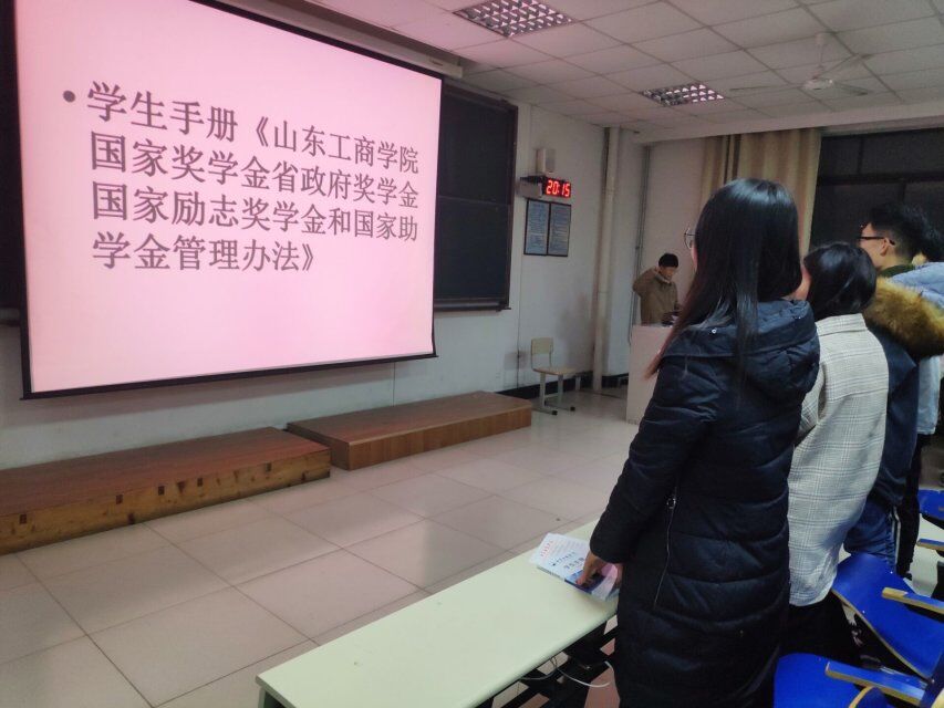 首先,班级内部分组讨论诚信教育的相关问题,同学们讨论到许多不诚信、不文明、铺张浪费的现象,并深入研究根本原因,探讨解决措施,接着各小组代表对本组探讨成果进行总结分享。然后各班团支书带领同学们共同学习《山东工商学院学生资助工作条例》、《山东工商学院国家奖学金和国家助学金管理办法》中部分内容,并播放相关内容PPT,最后由助学金获得者代表带领同学们诚信宣誓。