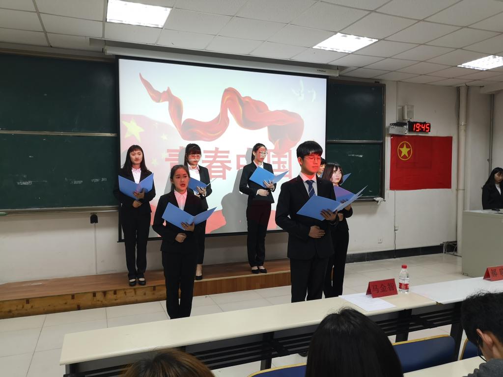 纪念活动以全体人员共唱共青团团歌《光荣啊,中国共青团》拉开序幕。演讲环节“我心中的五四”两位同学借用古往今来爱国人士和进步青年的事迹深刻诠释了五四精神,激发了同学们的爱国热情和实干精神。活动在学生会主席的领誓中进入尾声。活动最后学院领导从“五四精神”和“热血青年”两方面对同学们进行提问,并指出当代大学生应“立大志,拜大师,做大事”,学会督促自己,将想法落实行动,最后期望同学们能大展宏图,有所作为。