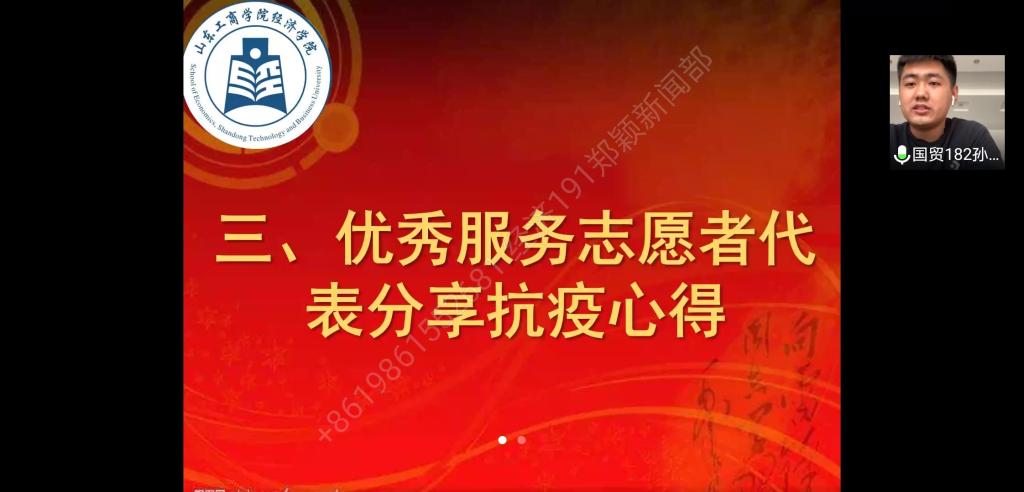 会议的第二项,主持人展评了亚搏中国官方网站_亚搏yabo(中国)优秀党员及学生的志愿事迹并强调了我们应当向他们学习并以之为榜样。会议的第三项分别由学生代表王瑞芳、胡龙祥、孙彦哲分享自己的志愿心得,从他们的精彩演发言中可以看到他们在疫情防控中都尽了一己绵薄之力并收获了一份真实可贵的经历。会议的最后,主持人组织大家观看了有关疫情防控的视频,学生干部进一步了解到了党和国家的重要思想以及这次疫情的总体措施和总结,增强了我们爱党爱国的热情。
