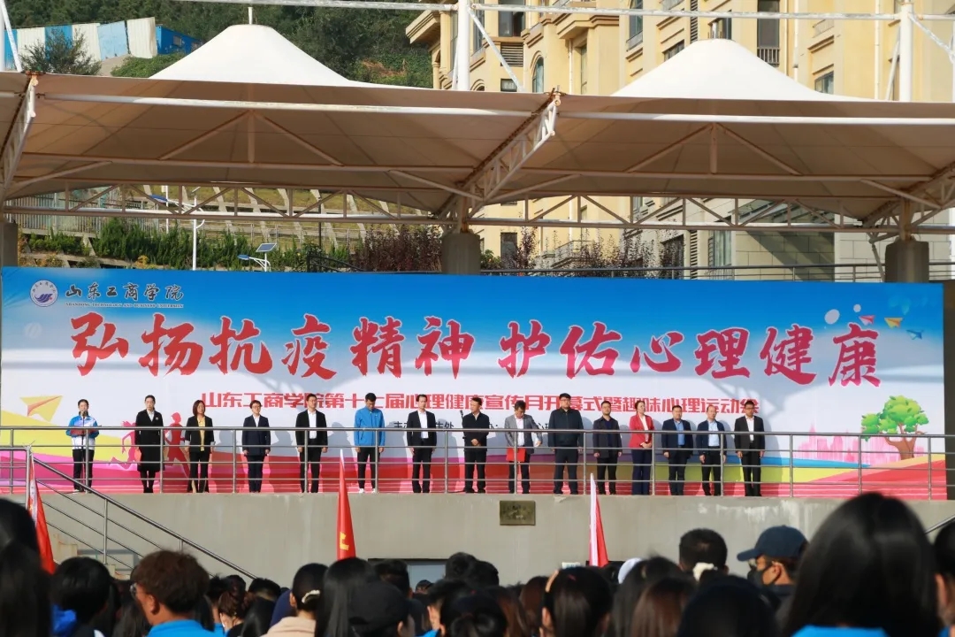 10月18日上午,山东工商学院第十七届“心理健康宣传月”开幕仪式在西校区田径场举行,参加本次活动的有刘向锋副校长、学生处领导、各二级学院领导、心理咨询教师、新生辅导员以及2020级全体新生。